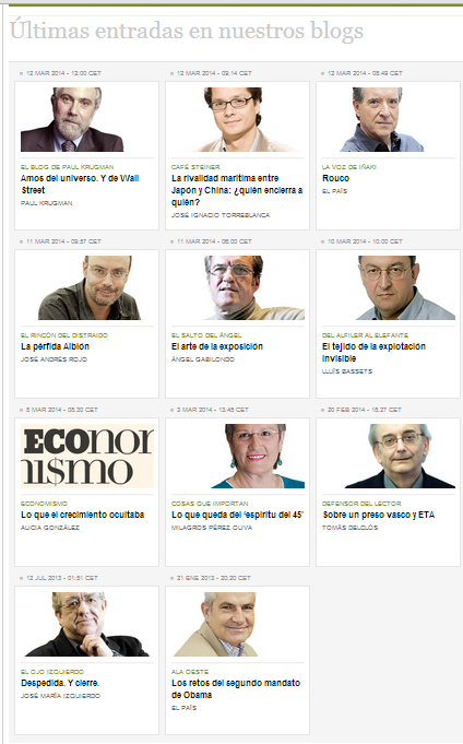 (De arriba a abajo, secciones de opinión y de blogs del ‘Ara’, ‘El Punt Avui’, ‘El Periódico de Cataluña’, ‘Público’, ‘El País’ y ‘La Vanguardia’.