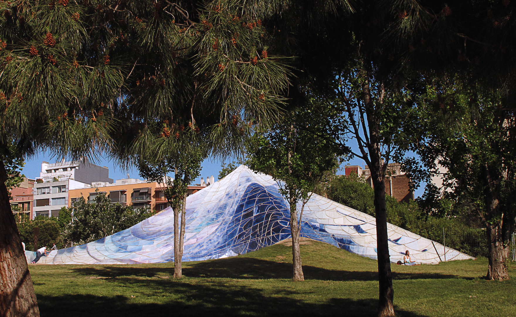 Cel caigut (Beverly Pepper, 1991). Situada en el Parc de l’Estació del Nord, en el que nacen diversas líneas de autobús internacionales, esta obra de Beverly Pepper es poco convencional. Su lienzo es el césped del parque en el que se reproduce este cielo caído, con tonos azules que contrastan con el verde del parque. Pepper, mediante el uso de la técnica del mosaico, quiso homenajear a Antoni Gaudí y a sus obras, como los bancos del Park Guëll.