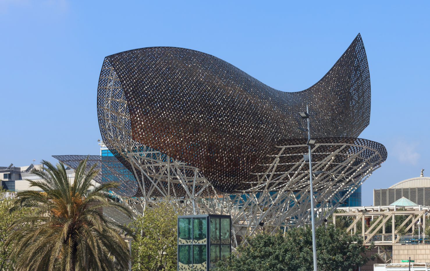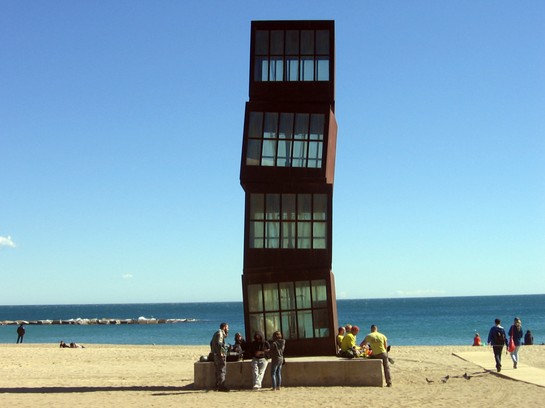Fish (Frank Gehry, 1992). Los Juegos Olímpicos sirvieron para renovar y abrir al resto de la ciudad algunas zonas que históricamente habían sido olvidadas en los planes urbanísticos de Barcelona. El litoral de la playa de la Barceloneta es un claro ejemplo de este proceso. El Fish (Pez) dorado de Frank Gehry culminó la construcción de dos rascacielos y es ahora uno de los principales símbolos de la orilla barcelonesa.