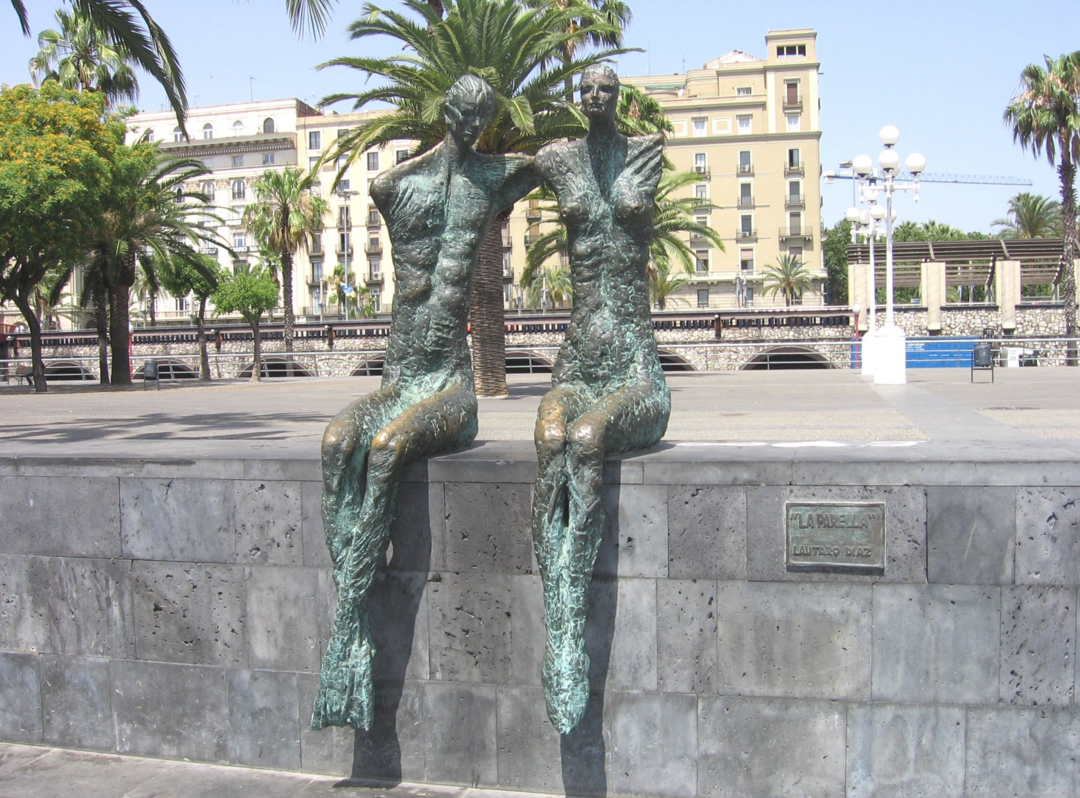 Parella (Lautaro Díaz, 1998). Delante de las tranquilas aguas del puerto de Barcelona, en el Moll de Bosch i Alzina, se descubren las figuras de esta pareja que contempla el paisaje marítimo sentada en el muelle. Esta escultura fue realizada por Lautaro Díaz, un escultor y pintor chileno que colaboró con su trabajo al impulso del arte en los barrios marítimos de la Ciudad Condal.