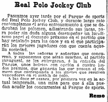 10 de noviembre 1916. El club de Polo de Barcelona fue fundado en 1897 y siempre ha sido un lugar de encuentro importante para eventos sociales de la alta sociedad barcelonesa. Hoy en día, resulta extraño ver reflejados sus eventos o competiciones en la prensa, sin embargo, en 1916 era habitual como vemos en este recorte.