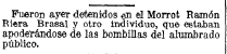 4 de noviembre de 1916. En la prensa de antaño de dedicaba más espacio a los sucesos de lo que suele hacerse ahora. Muestra de ello es este recorte que encontramos del día 4 de noviembre que explica que dos individuos habían intentado robar el alumbrado público. También destaca el hecho de que se publique el nombre de uno de ellos, ya que, en la actualidad, la prensa suele poner las iniciales o respetar el anonimato ante la presunción de inocencia.