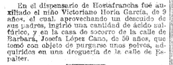 29 de octubre de 1917. Para finalizar la hemeroteca de octubre de 1917, os mostramos esta noticia de un suceso donde podemos leer que un niño fue atendido en una casa del socorro por ingerir ácido sulfúrico. Hemos escogido esta noticia para explicar qué eran las casas del socorro, estos centros de asistencia que hoy en día ya no existen. Las casas del socorro eran centros de primeros auxilios distribuidos por barrios que dependían de la Sanidad Municipal. Eran casi equivalentes a lo que hoy llamamos “Urgencias” y allí podíamos encontrar a un médico y a un enfermero que atendían a los heridos en accidentes de la calle y realizaban primeros auxilios.