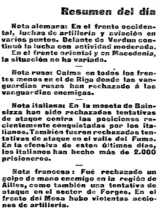 2 de octubre de 1917. Europa seguía librando la I Guerra Mundial en un año que sería clave para el desenlace del conflicto. Como podemos ver en este recorte, los diarios de Barcelona informaban, casi al día, de lo que ocurría en los países implicados. Además de la I Guerra Mundial, la Revolución Rusa seguía su curso: el mes de octubre de 1917 fue protagonista de la llamada “Revolución de Octubre”, la segunda fase de este conflicto que llevaría a formar el nuevo gobierno bolchevique.