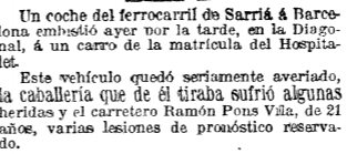6 de diciembre de 1917. En esta noticia vemos la narración de un suceso que nos llama la atención al ser entre un vehículo a motor y un carro de caballos. Aunque se trataba de un carro de animales, vemos que estos ya iban debidamente identificados con matrículas, como los vehículos a motor.